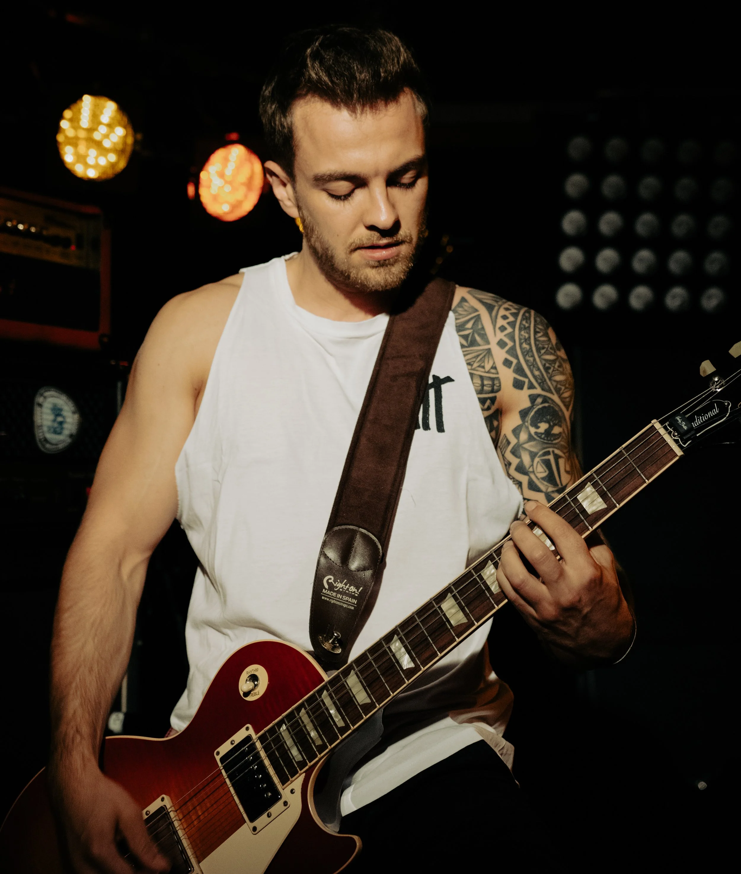 Heute spiele ich in mehreren Bands und kann mir nichts Erfüllenderes vorstellen, als mit der Gitarre auf der Bühne zu stehen. Vor einigen Jahren habe ich begonnen, mein Wissen weiterzugeben – praxisnah, individuell und mit dem Ziel, anderen genau dieses Gefühl zu ermöglichen. Seitdem habe ich viele Schüler:innen vom ersten Ton bis zum ersten Bühnenauftritt begleitet.